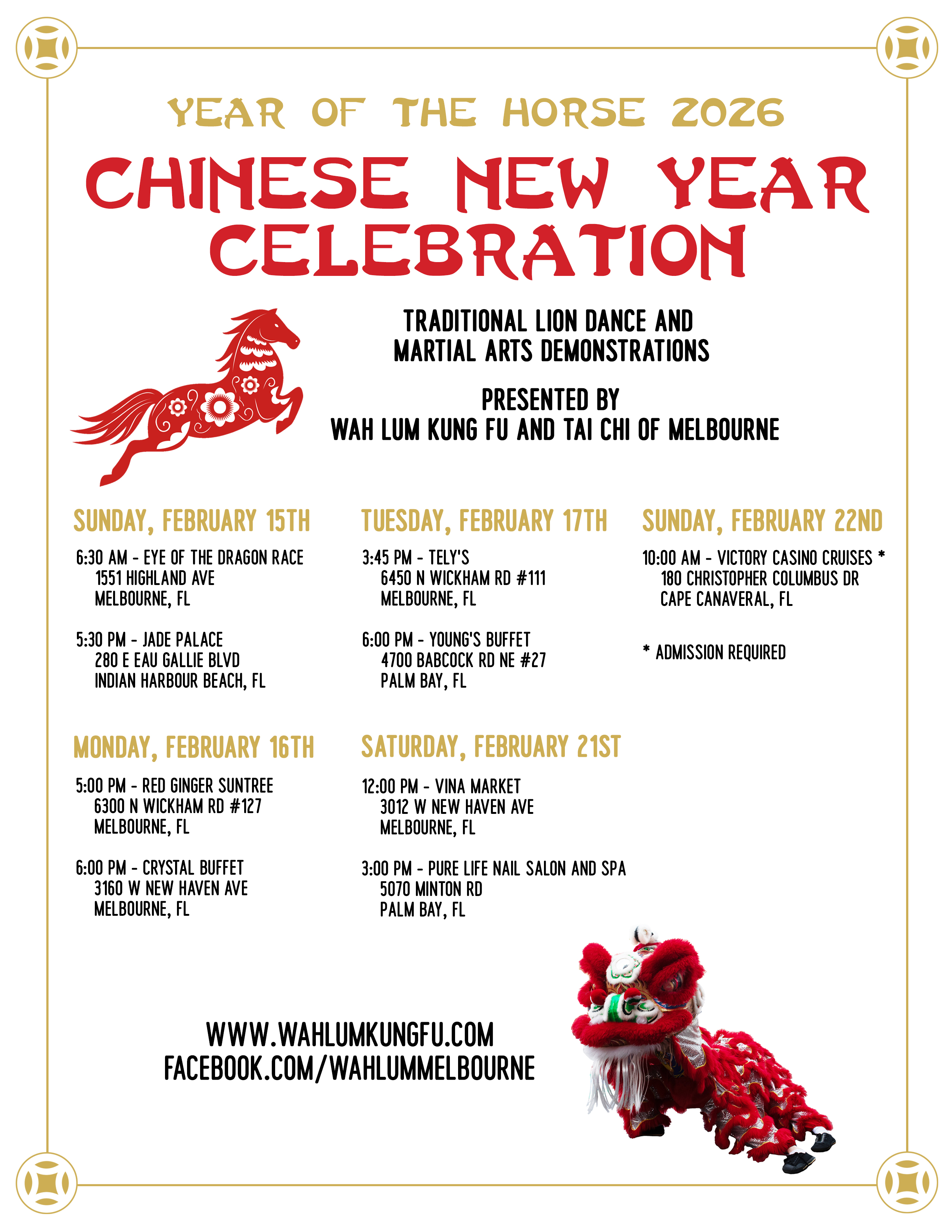 Wah Lum Kung Fu & Tai Chi of Melbourne | 662 N. Wickham Road | Melbourne, FL 32935-8754 |(321) 255-1048